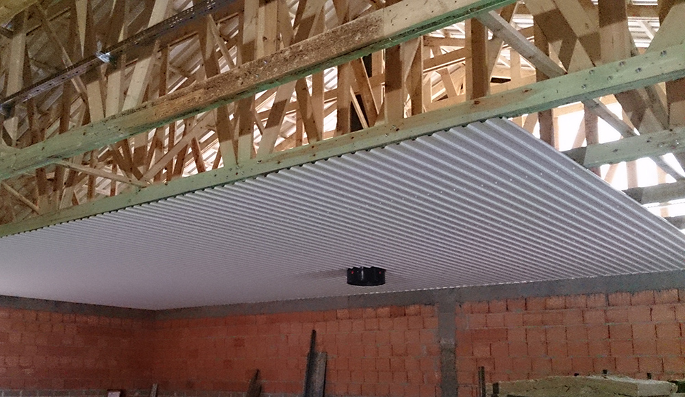 Sufit TERMO+ jest autorskim systemem naszej firmy. Głównym zamysłem, którym kierowaliśmy się podczas projektowania tego systemu był dobór odpowiednich materiałów, które pozwolą nam wykonać trwałe oraz odporne na działanie czasu i temperatury podwieszenie sufitowe. Pod naszą zabudową kryją się wszystkie istotne punkty podwieszenia systemów zootechnicznych zainstalowanych w obiekcie. Dzięki odpowiedniemu wykończeniu podbitka sufitowa od strony przestrzeni inwentarskiej pozostaje czysta oraz łatwa w utrzymaniu.