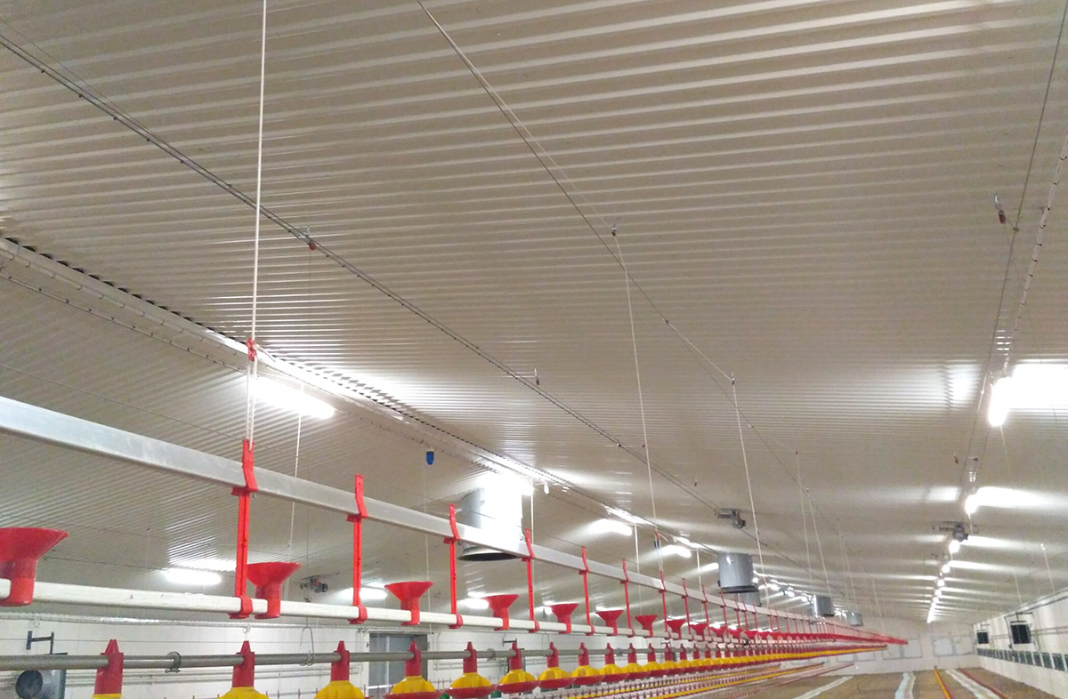- Zintegrowana Konstrukcja – na zabudowie podsufitowej bez obaw można zamontować wszystkie niezbędne elementy wyposażenia linii (pojenia, karmienia), oświetlenie, wentylację. Zabudowa podsufitowa zawiera wszystkie punkty kotwiczenia instalacji zootechnicznych.